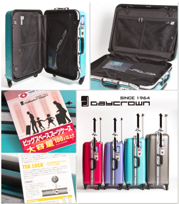 In the recent years, Daycrown has has launched a series of exquisite luggage with the famous designers. Since in 1964, the design and color is always following the fashion trend and bringing the new traveling experience into the market. A side from years of experiment and experience in manufacturing, we have proved quality and functionality to our customers: Not only stylish, light and secure, but also easy to maneuver and able to withstand the most harsh handling during any travel condition.